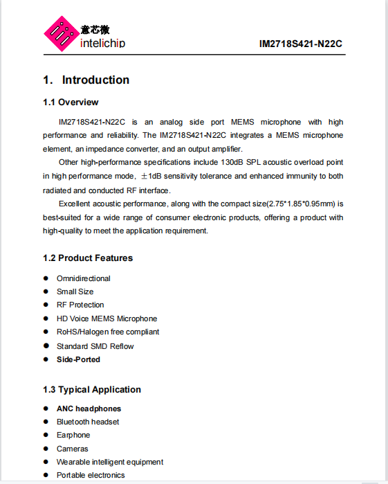首頁 > 產(chǎn)品中心 > 硅麥麥克風 > 模擬