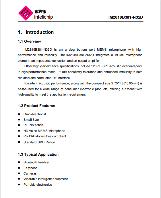 首頁 > 產(chǎn)品中心 > 硅麥麥克風 > 模擬