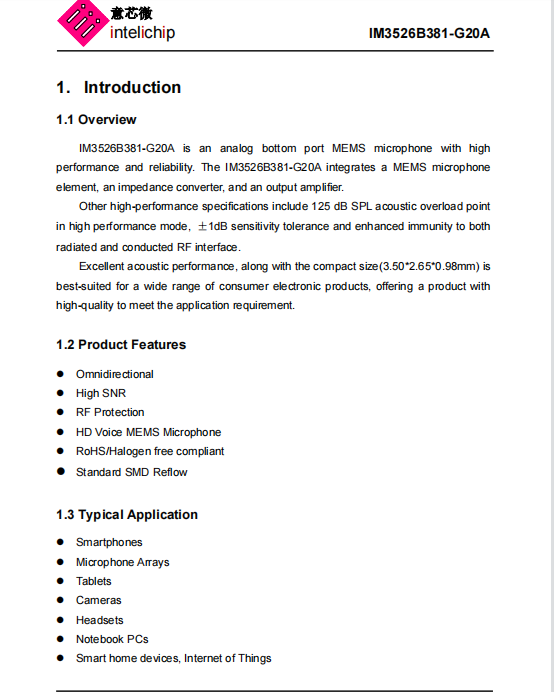 首頁 > 產(chǎn)品中心 > 硅麥麥克風(fēng) > 模擬